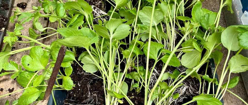 Most of my trays are 50 cells. I do 50 at a time because the walking break between each 50 transplants gives me a chance to stand up straight and stretch. The longer I bend over, the more stiff my back feels. If I take these breaks to go get another tray, I’m more mobile for longer. It’s a way to pace myself. If you need even more time between each tray to recuperate, keep your trusty water hose close by and give the new transplants a good watering in.
